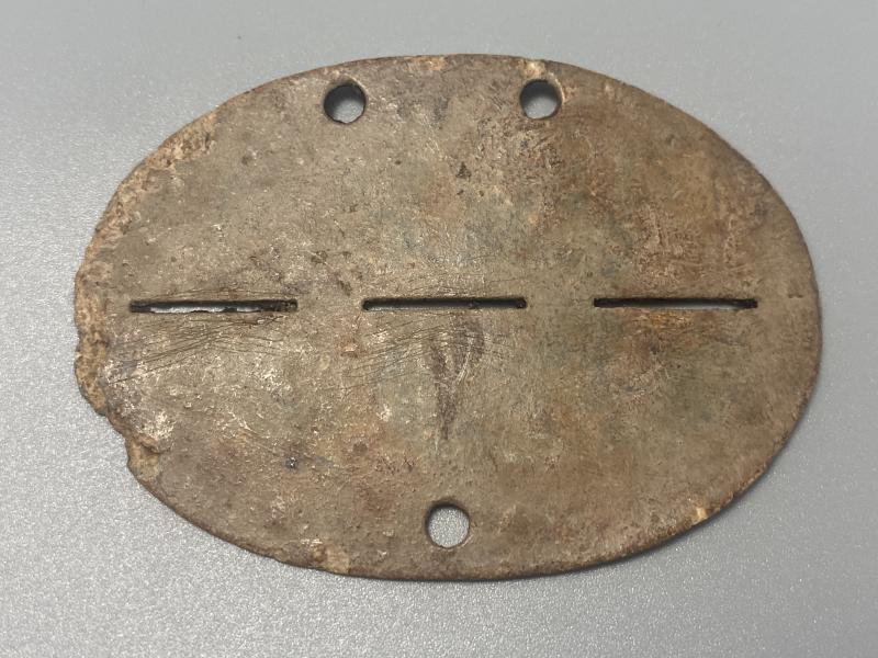 Original Luftwaffe identification disc (Erkennungsmarke) issued to a member of the 18th Luftgau Nachrichten Regiment 2, stamped with soldier number 338. These units were responsible for communications, signals, and air defence coordination within the Luftgau district commands of the German Air Force.