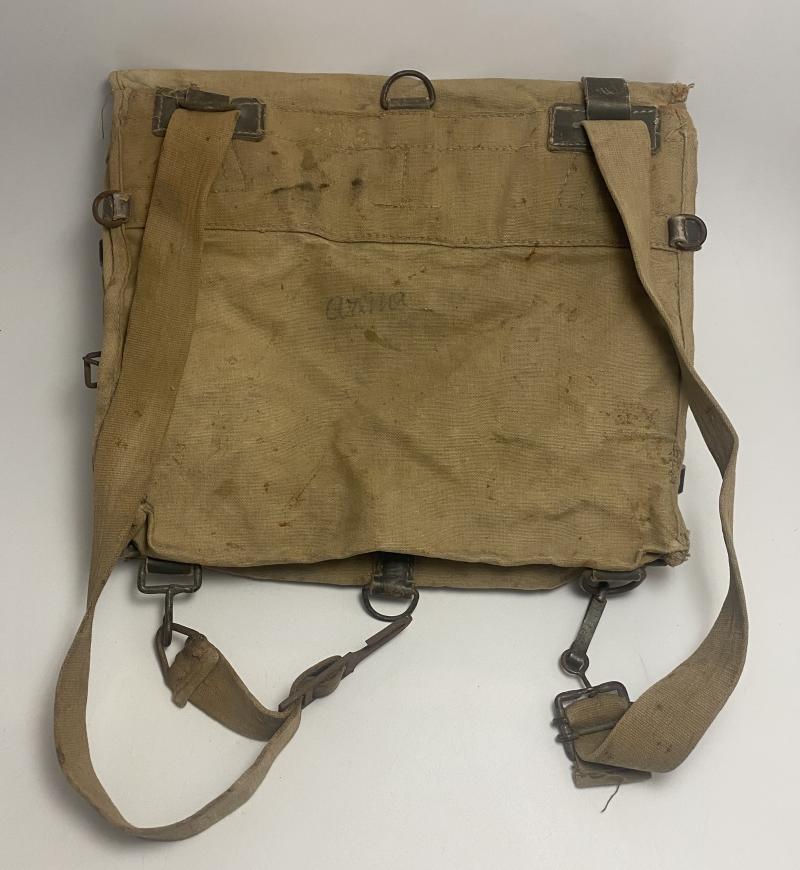 The Italian M29 combat pack was introduced in the interwar period and remained in use through the Second World War. These packs were issued to Italian infantry units and designed to carry essential field equipment during combat operations. Examples dated to the mid-1930s are particularly desirable, representing early production prior to wartime material shortages and simplifications.