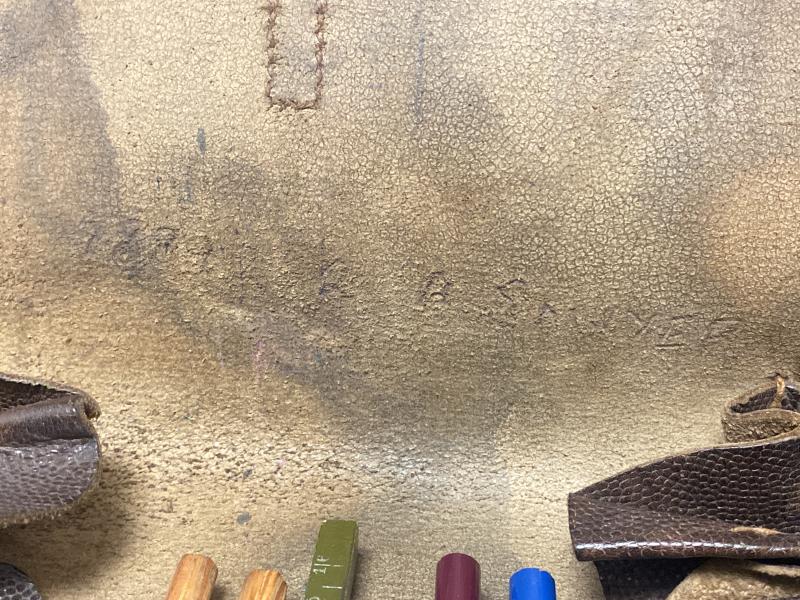 “B. Sawyer” likely the name of the British serviceman who picked up the case during the early Western Front campaigns (circa 1940).